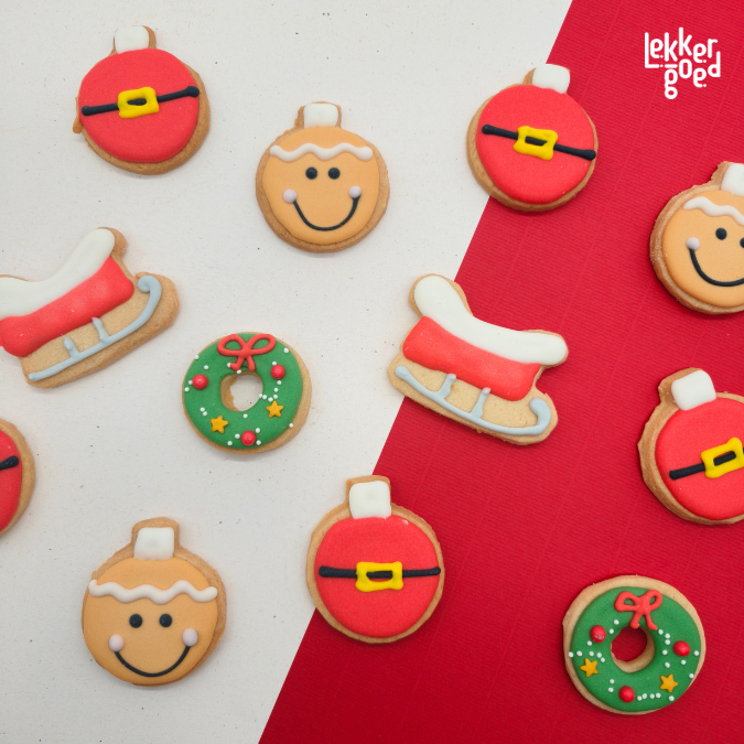 In de vorm van de slee van de Kerstman, kerstballen en een kerstkrans. Ze zijn knapperig, zoet en gewoon superlekker bij een kop koffie of thee 🙂
