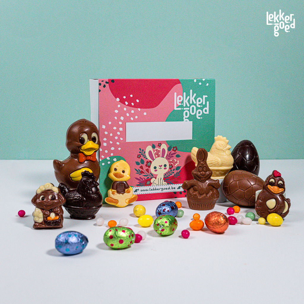 Mooi verpakte paasdoos met gevuld met ambachtelijke chocolade van TOPkwaliteit.