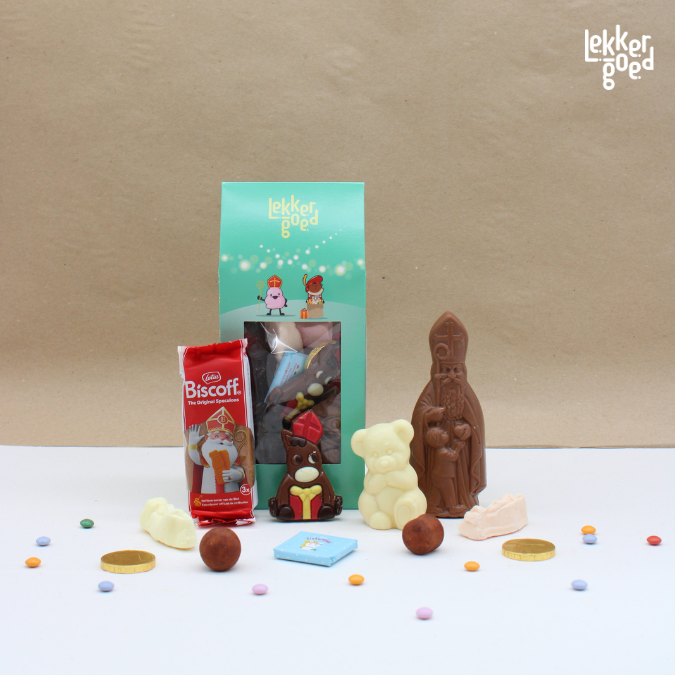 Een klein maar fijn Sintpakket, kant en klaar: leuke, diverse producten. 1 voor 1 superlekker!