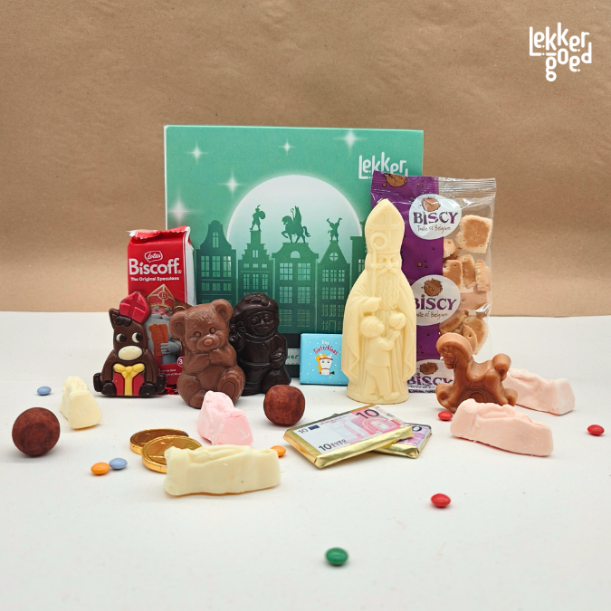 Verpakt in mooie Sint-doos met illustratie “wie zoet is, krijgt lekkers”. Voeg jouw persoonlijke boodschap toe en dit wordt genoteerd op het kaartje dat in de sleeve schuift.