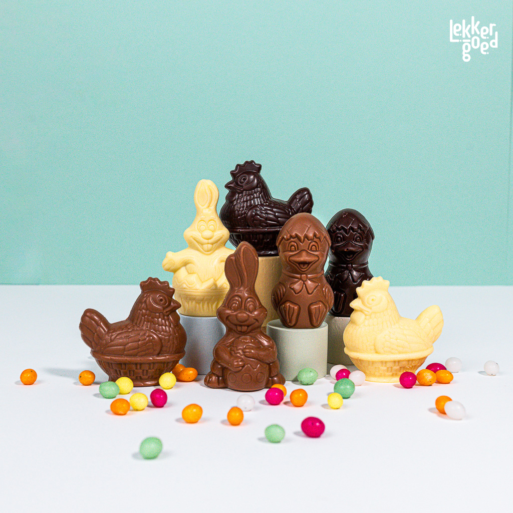 Verfijnde chocolade-figuren in leuke vormen: een klassieker voor Pasen.